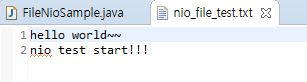 FileNioSample.test("hello world~~ \nnio test start!!!");