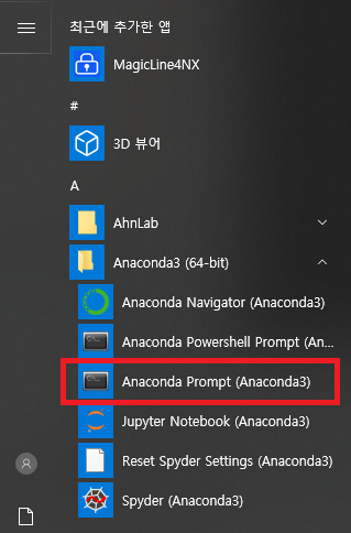 1. Anaconda Prompt 를 실행한다. ( 윈도우 시작키)